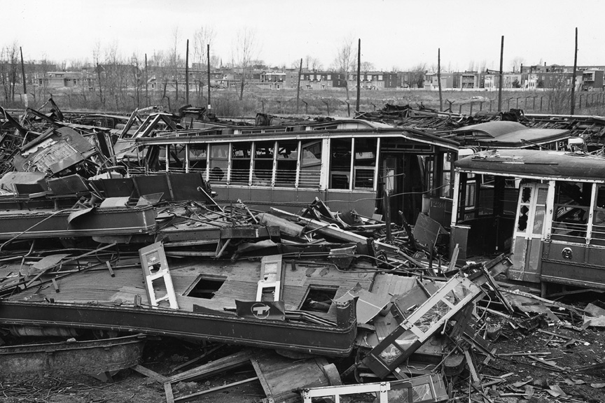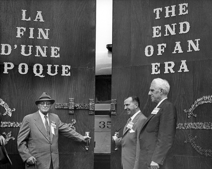 Ce sera finalement sur huit ans que s’effectuera le retrait des tramways. Parallèlement, la CTM fit l’acquisition d’environ 1 300 bus afin de remplacer les 939 vieux tramways qui disparaissent ainsi du paysage urbain de Montréal. En 1956, un grand défilé fut organisé sur la rue Ste-Catherine. Trois ans plus tard, le 30 août 1959, un autre défilé eut lieu, cette fois-ci, sur l’avenue Papineau et le boulevard Rosemont. Ce dernier marqua la fin d’une époque, puisqu’après 100 ans d’activité, les derniers tramways furent définitivement retirés de la métropole québécoise.